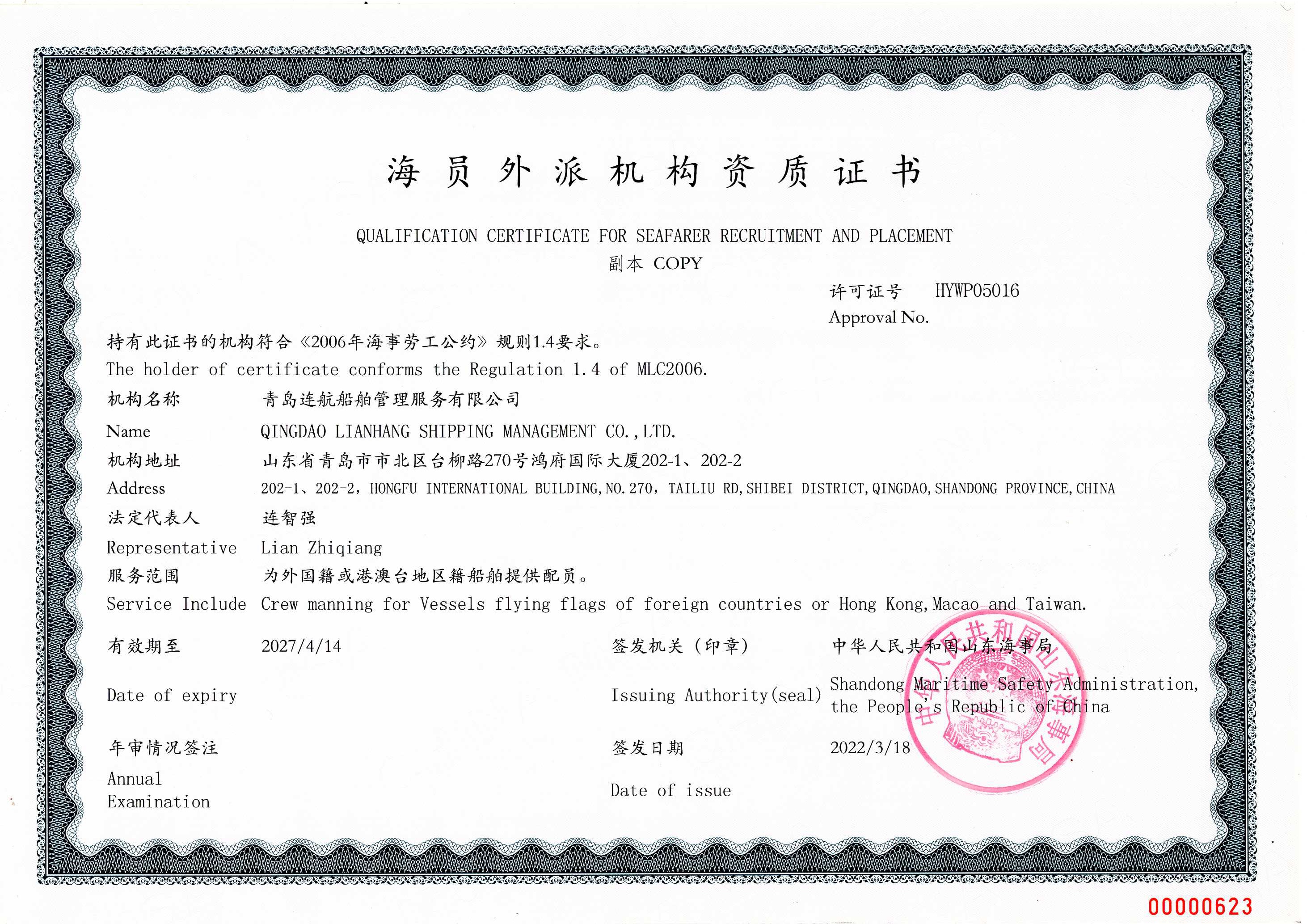 青島連航船舶管理服務有限公司 版權(quán)所有 魯ICP備18042903號 魯公網(wǎng)安備 37020302371571號
