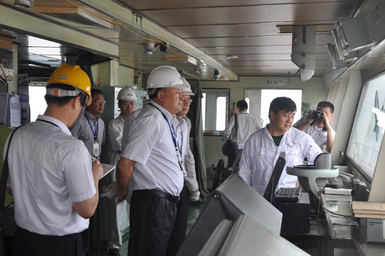 2013年7月16日,中外運集團總部領(lǐng)導(dǎo)蒞臨我公司所管理的中外運泉州輪,進行現(xiàn)場指導(dǎo)工作。對船舶甲板部和機艙部的相關(guān)工作給予了建議和指導(dǎo),公司總經(jīng)理連智強陪同一起視察工作